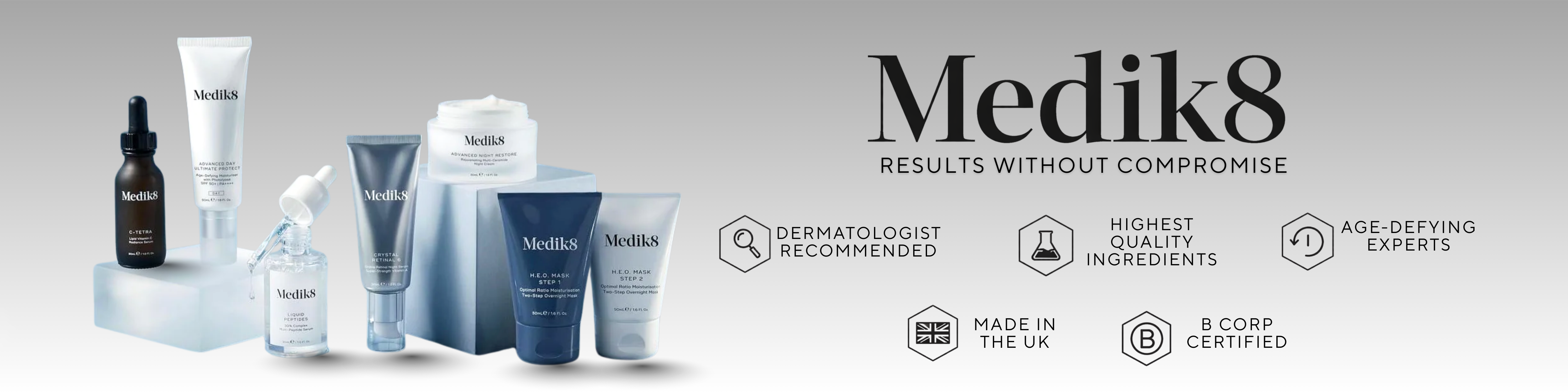 Medik8's professional-grade line crafted to deliver visible results and nurture your skin's health. Known for their science-backed formulations, Medik8 offers a comprehensive range of solutions tailored to various skin concerns. Explore cult favorites like the Medik8 Press & Glow™ PHA Toner, a gentle exfoliating toner that brightens your complexion. Pair it with the Medik8 Advanced Night Restore Night Cream, enriched with antioxidants and ceramides. For a hydration boost, the iconic Medik8 Hydr8 B5™ and its potent counterpart, Medik8 Hydr8 B5 Intense™, drench your skin with hyaluronic acid and nourishing botanical extracts. Discover the power of Medik8 skincare and find your perfect match.